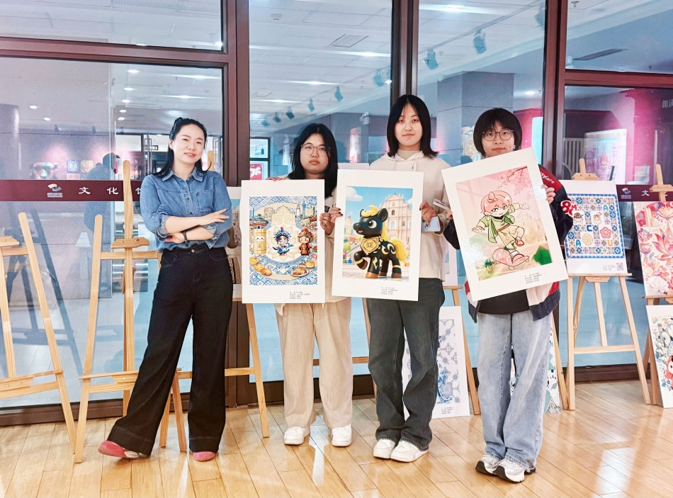 23级学生魏思雅、樊珈琪、金熙晨在徐正瑜老师的带领下,以“纹・礼”主题,既萃取中国传统纹样中的吉祥寓意,又融入澳门葡式瓷砖的地域特色,通过数字化设计将传统元素与现代审美有机结合,最终成功入选“澳纹礼韵”组别展览,并共同斩获“创作新星奖”。与此同时,学院因出色的赛事组织协调能力、高质量的参赛作品输出,被授予“最佳组织奖”。